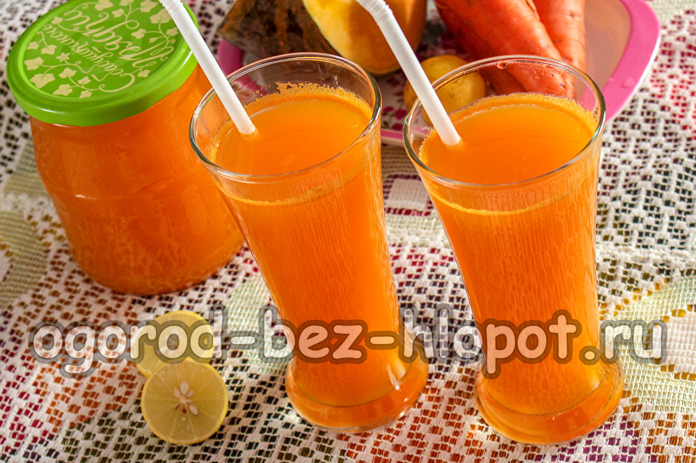 호박과 당근의 비율은 취향에 따라 조절해도 되지만, 일반적으로 호박은 당근의 두 배를 사용하는 것이 좋습니다. 채소 껍질을 벗기고 굵게 다진 후, 소량의 물과 함께 완전히 끓입니다. 그런 다음 블렌더에 갈아줍니다(블렌더가 없으면 푸드 프로세서를 사용하거나 체에 거릅니다). 설탕을 넣고 원하는 농도가 될 때까지 물을 넣어 희석합니다. 마지막으로 약 5분간 즙을 끓인 후 구연산을 넣고 병에 붓습니다.