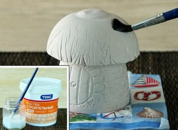 조각품을 안정적으로 고정하려면 땅에 묻거나 석고 받침대를 만들어야 합니다. 석고 받침대를 만들 경우, 혼합물을 그릇에 얇게 붓고 버섯을 그 안에 넣습니다. 완전히 식힌 후 꺼냅니다. 마지막으로 석고 조각품에 방수 아크릴 물감을 칠하기만 하면 됩니다.