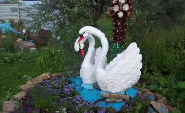 동물도 잊지 마세요. 아름다운 백조는 연못에서 늘 사랑받는 존재입니다. 다차에서 생활용품으로 백조를 만들어 보세요. 필요한 재료는 다음과 같습니다.