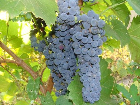 포도나무는 강건하며 높은 수확량을 보장하기 위해 관리됩니다. 포도는 크고 평균 무게가 120g입니다. 열매는 작고 검은색이며 한쪽 면이 붉은빛을 띱니다. 맛은 적당하며 딸기 향이 은은하게 납니다. 와인과 리큐어를 만드는 데 사용됩니다.