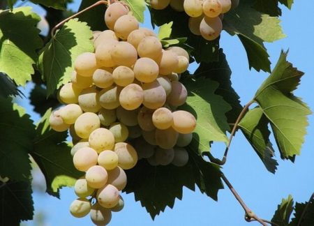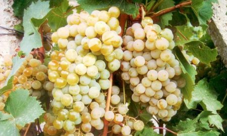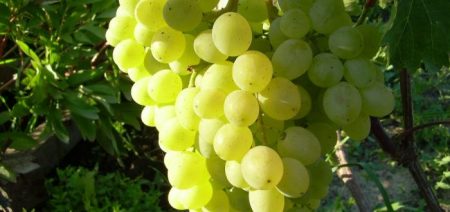 포도송이가 보기 흉하게 보이는 것은 포도의 뛰어난 맛과 내한성 덕분입니다. 열매는 일찍 익으며, 수확은 8월 중순부터 시작됩니다. 크기와 무게가 작은 과일 즙이 많고 달콤합니다. 색깔: 희끄무레한 녹색, 햇빛 아래에서는 호박색.