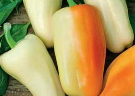 열매는 최대 120g까지 자라고, 원뿔 모양이며, 두께가 최대 6~7mm에 달하는 벽을 가지고 있습니다. 고추의 색깔은 매우 흥미롭습니다. 처음에는 희끄무레한 노란색이지만, 나중에는 붉은빛이 도는 색으로 변합니다.