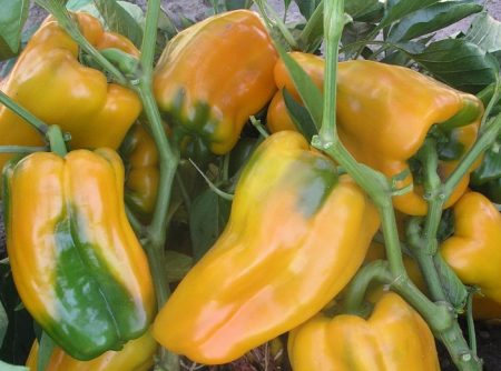 이 교배종은 생산성이 높고 재배하기 쉬우면서도 맛있고 즙이 많은 열매를 맺습니다. 이 식물은 키가 최대 60cm까지 낮게 자라며, 중간 크기의 잎과 짙은 녹색의 주름진 잎사귀를 가지고 있습니다. 정육면체 모양의 열매는 기술적 성숙 단계에서는 짙은 녹색을 띠고, 생물학적 성숙 단계에서는 밝은 노란색으로 변합니다. 고추의 무게는 약 200g이지만, 온실에서는 최대 300g까지 재배할 수 있습니다.