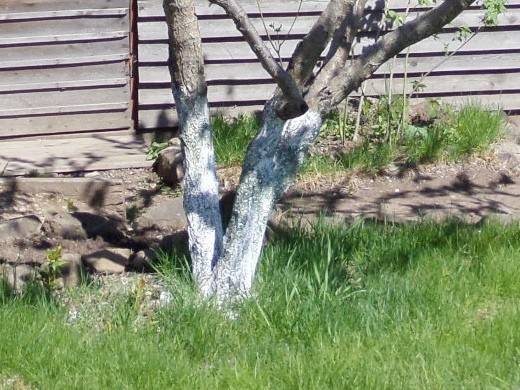 시간이 지나면서 하얗게 칠해진 사과나무는 다음과 같은 것에 대한 보호력이 강화됩니다.