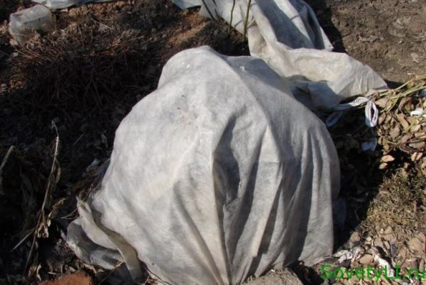 다음 내용에 관심이 있으실 수도 있습니다.덮개 재료는 미리 준비합니다. 마른 톱밥, 짚, 마른 잎, 가문비나무 가지가 모두 적합합니다. 60% 부직포나 아그로파이버를 사용할 수도 있습니다. 관목 가지는 부러지지 않도록 주의하면서 땅으로 구부리고 나무 스테이플러나 핀으로 고정합니다. 격자나 판자로 덮개를 만들거나, 특별히 제작한 아치를 설치할 수 있습니다(높이 10cm 이하). "지붕"과 식물이 놓이는 지면 사이의 전체 공간은 느슨한 단열재로 채우고, 그 위에 천 덮개나 가문비나무 가지를 씌웁니다.