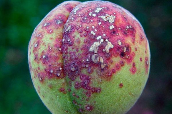 - 클라스테로스포리움(총구병)은 잎에 난 구멍으로 쉽게 발견됩니다. 어떤 사람들은 이 병을 해충 감염의 징후로 오인하여 애벌레라고 생각하지만, 자세히 살펴보면 조직이 죽어 있습니다. 화학 처리는 사용 설명서에 따라 엄격하게 적용해야 합니다. 이 병은 습도가 높고 기온이 섭씨 25도 이상인 여름에 가장 자주 발생합니다.