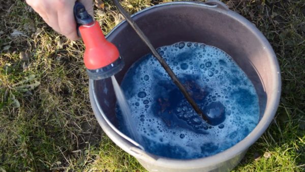 용액을 희석하기 전에 분무기 노즐이 제대로 작동하는지 확인하십시오. 용액의 농도는 균일해야 합니다. 자신과 나무에 해를 끼치지 않도록 농도를 높이지 마십시오.