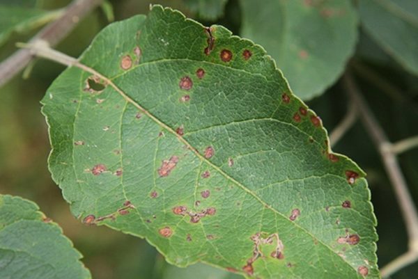 갈색 반점이 어두운 테두리로 둘러싸인 형태로 나타납니다. 갈색 반점은 잎에 영향을 미칩니다. 곰팡이 포자는 중앙에 위치하며 작은 검은 점으로 나타납니다. 영향을 받은 모든 잎은 제거하고 소각합니다. 나무 줄기는 파냅니다. 사과나무는 요소로 처리합니다. 용액 농도는 나무에는 5%, 줄기에는 7%입니다.