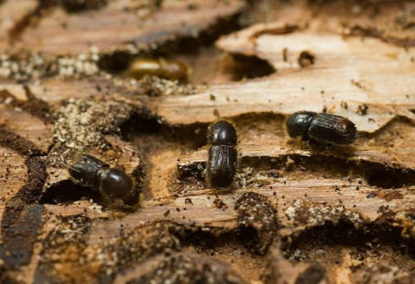 나무껍질딱정벌레는 작고 검고 윤기가 나는 벌레입니다. 나무껍질을 먹고 살며, 오래된 사과나무에서 서식하는 것을 선호합니다. 살충제를 뿌리기 전에 정원사들은 곤충의 터널에 철사를 꽂습니다. 그런 다음 각 터널에 적합한 살충제를 주입합니다.