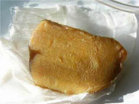 혼합물 자체는 반고체 상태입니다. 약간 데워서 나무 조각에 바른 다음, 잘린 나무 끝부분을 모두 단단히 감싸야 합니다.