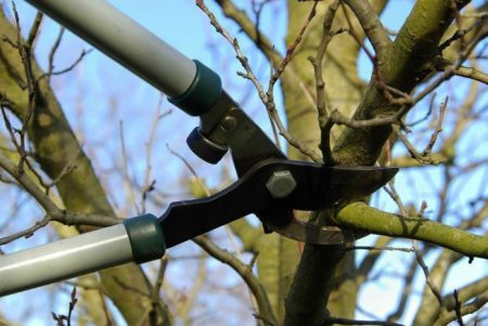숙련된 정원사들은 사과나무의 죽거나 병들었거나 원치 않는 가지를 가지치기할 때 날카로운 톱을 사용할 것을 권장합니다. 이 도구는 특수 전정 가위나 톱으로 대체할 수도 있습니다. 손이 닿기 어려운 가지를 가지치기할 때는 특수 전정 로퍼나 전정 칼을 사용할 수 있습니다.