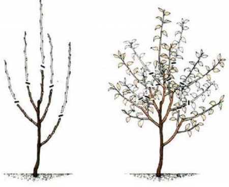 키가 작은 과수나무도 신중하고 시기적절한 가지치기가 필요합니다. 특히 수관(crown)의 경우, 적절한 관리가 향후 수확에 영향을 미치기 때문에 더욱 그렇습니다. 수관 가지치기는 튼튼하고 건강한 가지가 약한 가지 아래에 위치하도록 해야 합니다. 가지 맨 위에 있는 눈은 제거해야 합니다. 이렇게 하면 중간 크기의 눈들이 더 잘 자라 더 빽빽하고 튼튼한 새순이 형성될 수 있습니다.