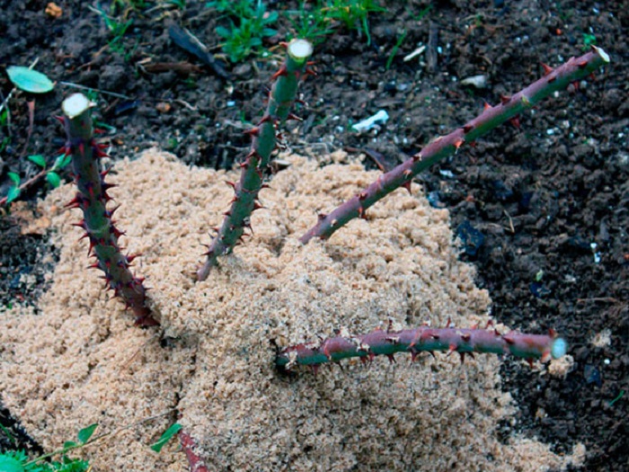 덮개. 뿌리를 흙 위로 얹고 뿌리덮개를 한 겹 깔아준 후, 그 위에 가문비나무 가지나 잎을 얹어주면 됩니다. 눈이 내리면 장미가 잘 보호됩니다. 이 방법을 사용할 때는 덮개를 씌우는 시기를 잘 맞추는 것이 중요합니다. 너무 일찍 덮으면 비에 젖어 썩기 시작할 수 있습니다. 겨울철 장미를 덮는 가장 중요한 규칙 중 하나는 최대한 건조하게 유지하는 것입니다. 일부 정원사들은 장미를 완전히 묻어주고, 부드럽고 건조한 흙으로 덮기도 합니다.