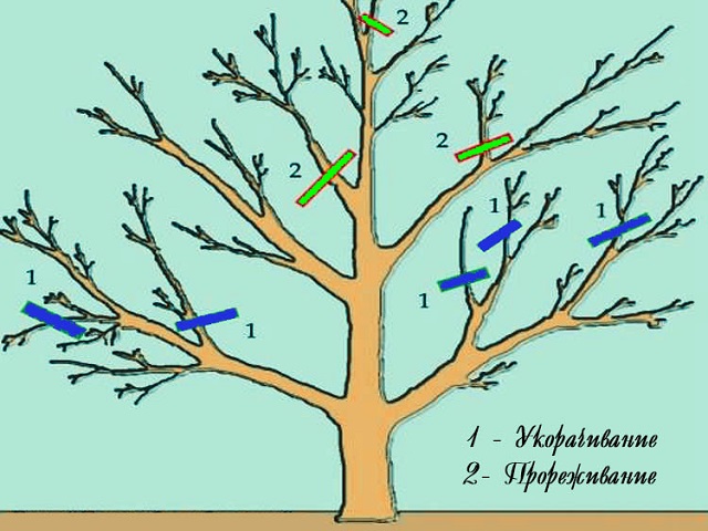 예를 들어, 아직 열매를 맺지 않은 나무는 최소한의 가지치기 방법을 사용하여 가지치기합니다. 몇 년 후 수확을 용이하게 하기 위해 뼈대 가지를 낮게 심습니다. 향후 열매 맺기에 방해가 되는 새순은 예각으로 제거합니다. 하지만 이 작업은 소량씩, 아껴서 해야 합니다. 새순 제거 속도는 열매 맺기 2~3년 후에야 빨라질 수 있습니다. 이 기간은 첫 가지치기를 한 해부터 계산합니다. 이러한 방법은 크고 고품질의 열매를 맺는 데 도움이 됩니다. 죽거나 병든 가지를 제거하는 것도 이러한 목적에 도움이 됩니다.