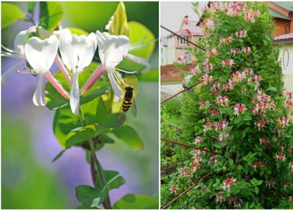인동덩굴의 또 다른 종류는 인동덩굴이라고 불리는 덩굴성 관목입니다. 몇 년 안에 이 식물은 약 5미터 높이의 울타리를 휘감아 마치 살아있는 푸른 꽃 울타리처럼 보입니다. 이 관목은 겨울 추위에도 견디지 못하기 때문에 보호가 필요합니다.