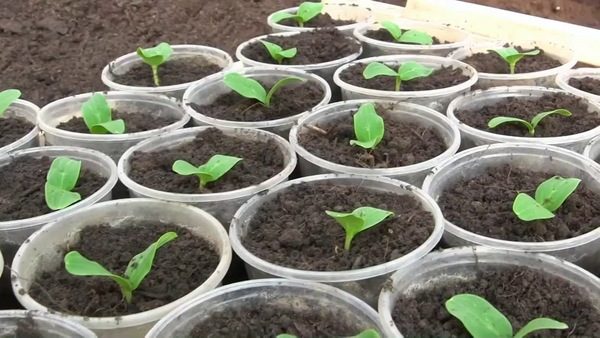 묘목은 4월 초순부터 열흘 정도 후에 파종합니다. 소독된 씨앗을 개별 트레이에 1.5~2cm 깊이로 심습니다. 첫 싹은 6~7일 후에 나타납니다. 잎이 두 장 이상 나면 화단에 옮겨 심을 수 있습니다. 묘목 간격은 50cm로 유지합니다. 예상되는 추운 날씨가 오기 전에 묘목을 비닐 랩으로 덮어줍니다.
