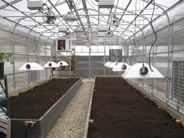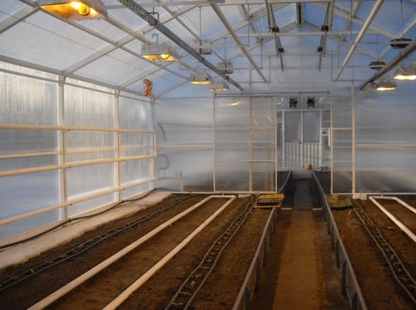 특수 LED 재배 조명도 조명에 적합합니다. LED는 적색-청색 스펙트럼을 가지고 있어 성장을 촉진하고 결실을 향상시킵니다. 이 스펙트럼에 장기간 노출되면 시력에 매우 해로우므로 온실 작업은 자연광에서 진행해야 합니다.