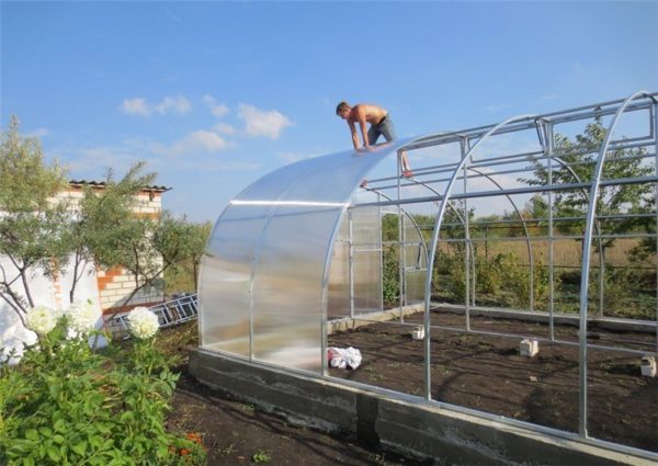 이러한 조건을 제공하십시오. 폴리카보네이트 온실에서 오이를 재배할 수 있습니다 겨울에는 유리 재질로 제작됩니다. 필름 온실은 강도가 약해 겨울철 사용에 적합하지 않습니다. 폭설 시 필름이 처지고 눈이 쌓여 구조물이 무너질 수 있습니다.