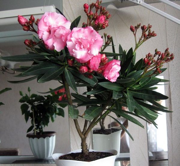 거실이 남향이라면, 이 관상용 식물은 여러 개의 방이 있는 공간에 적합합니다. 채광이 중요합니다. 그늘에 너무 오래 두면 잎이 시들고, 줄기가 팽팽해지며, 새싹이 더 이상 맺히지 않고, 꽃이 피었다가도 금방 시들어 버립니다. 협죽도 꽃은 정체된 공기 속에서는 빨리 시들기 때문에 정기적인 환기가 필요합니다. 창문을 열 때는 외풍을 막기 위해 문을 닫아 두세요.