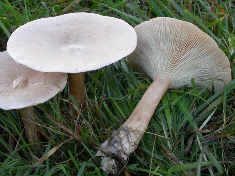 아가미는 대부분 흰색입니다. 살에서는 은은한 밀가루 냄새가 납니다. 줄기는 낮고 원통형입니다. 주로 개활지에서 자랍니다.