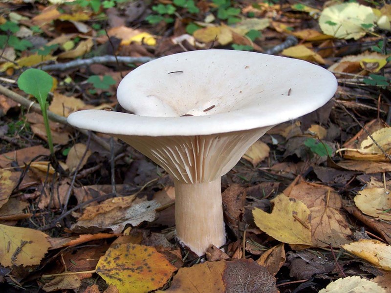 깔때기 모양의 버섯은 이 종의 가장 흔한 변종 중 하나이며, 숲길의 낙엽이나 덤불, 작은 무리 또는 개별 버섯에서 발견될 수 있습니다. 이 버섯은 조리하기 전에 열처리됩니다. 이 버섯은 말려서 다른 버섯과 함께 먹을 수 있습니다.
