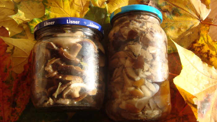 먼저 버섯을 깨끗이 씻어 끓는 소금물에 30분간 담가 두면서 가끔씩 저어줍니다. 시간이 지나면 불을 끄고 육수와 버섯을 식힌 후 체에 밭쳐 물기를 뺍니다. 삶은 버섯을 병이나 다른 용기에 담고 소금, 후추, 마늘, 정향으로 간을 합니다.