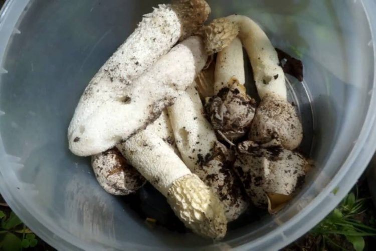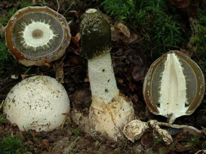 어느 정도 성숙 단계에 이르면 "껍질"이 터지면서 끈적끈적한 갓으로 덮인 줄기와 유사한 구조가 드러납니다. 표면은 노란색 포자로 덮여 있는데, 이 포자는 매콤하고 부패한 냄새를 풍기며 반경 50미터 이내의 곤충을 유인합니다. 포자가 떨어지면 버섯은 빠르게 자라기 시작합니다.