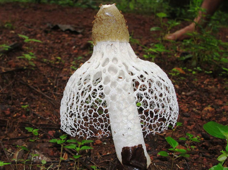 - 토가버섯은 더 많은 곤충을 유인하기 위해 길이가 다양한 격자무늬 망사가 특징입니다.