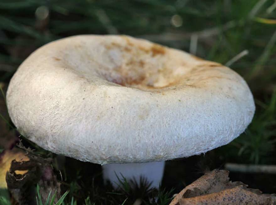 흰버섯의 독특한 특징은 갓 표면의 푹신한 표면인데, 특히 가장자리에서 눈에 띕니다. 이 푹신한 표면은 젖버섯의 특징이며, 열매 줄기에서도 볼 수 있습니다.