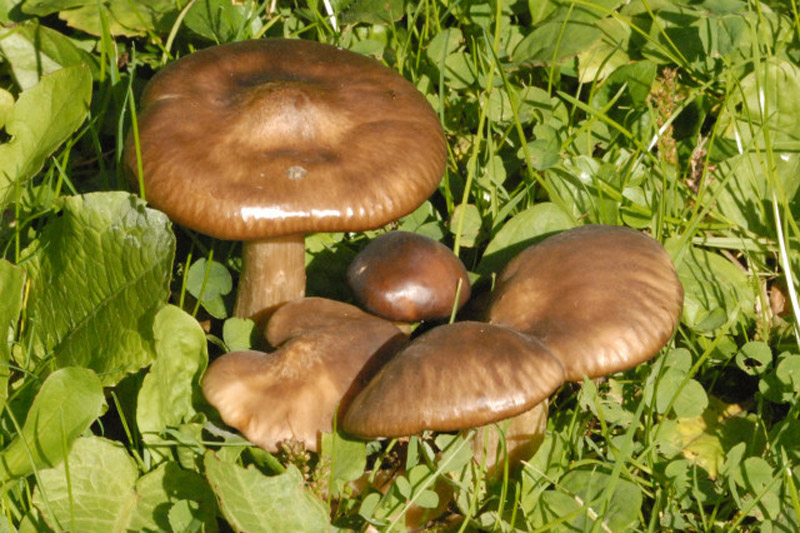 비누줄 - 갈색 – 중앙에 어두운 반점이 있는 갈색의 납작한 모자와 부러지면 붉은색으로 변하는 살로 구별됩니다.