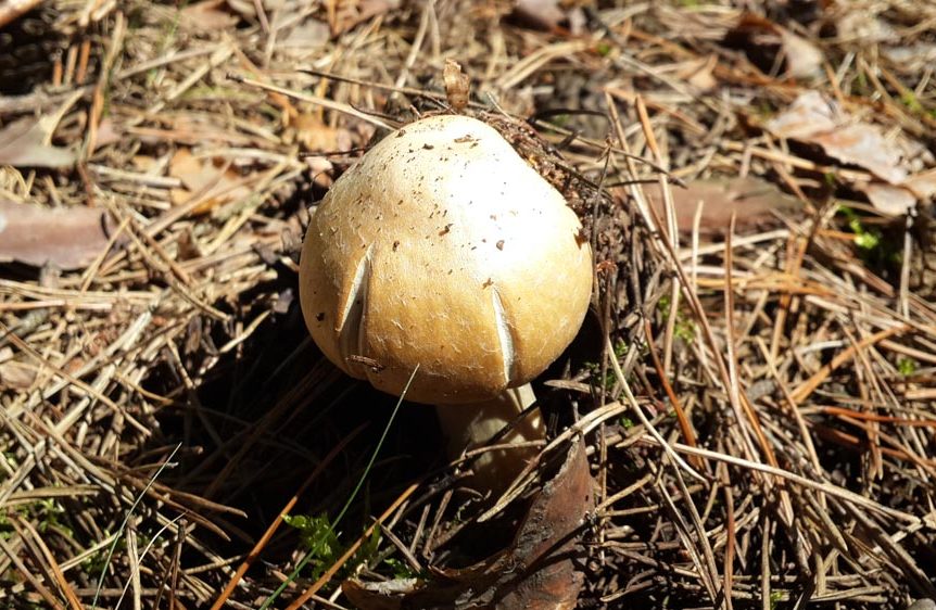 - 식용 버섯은 줄기 밑부분에 자루와 같은 형태가 없습니다.