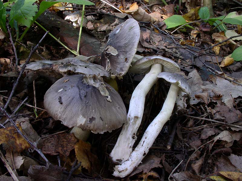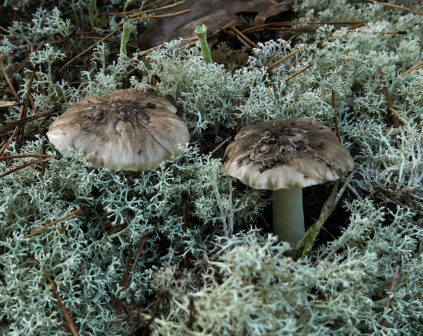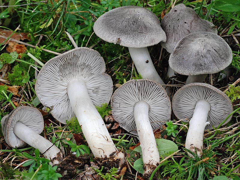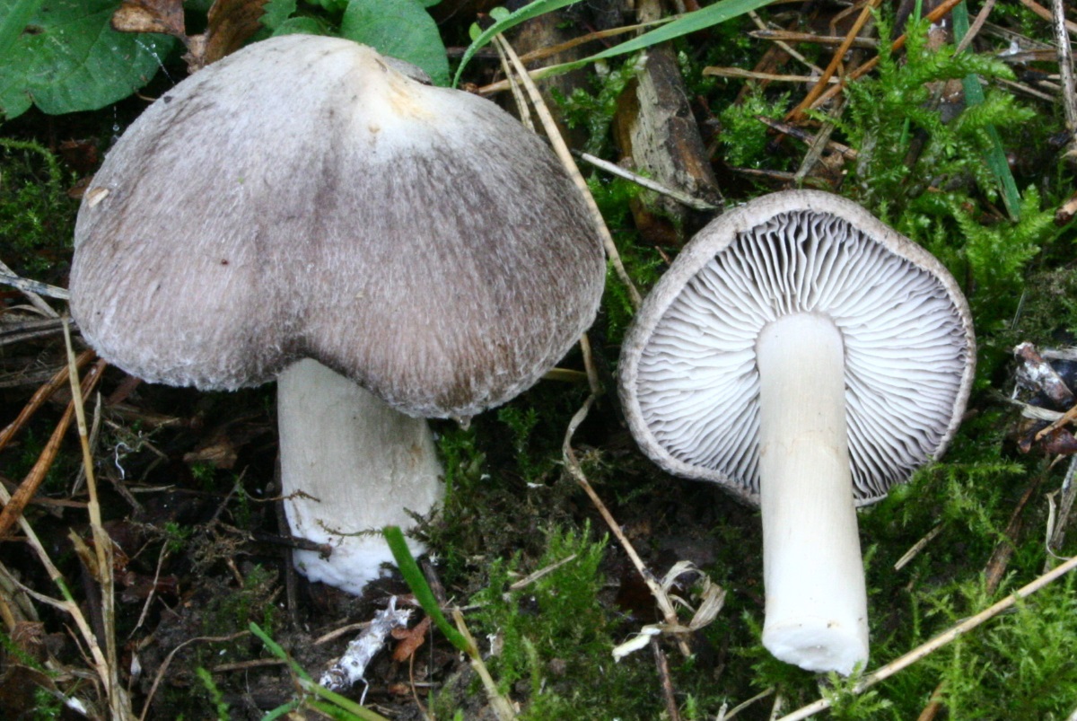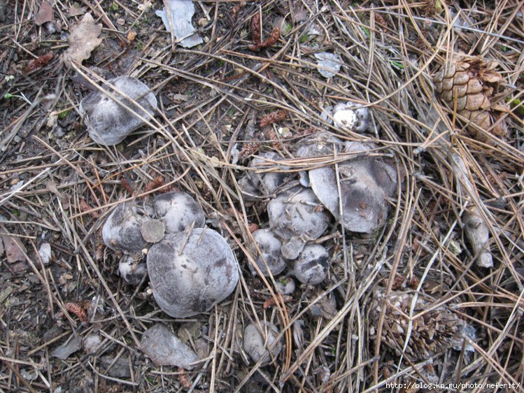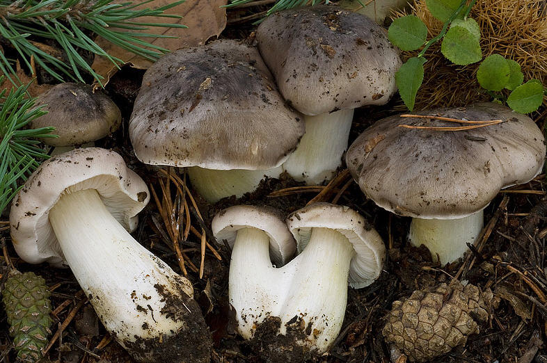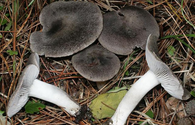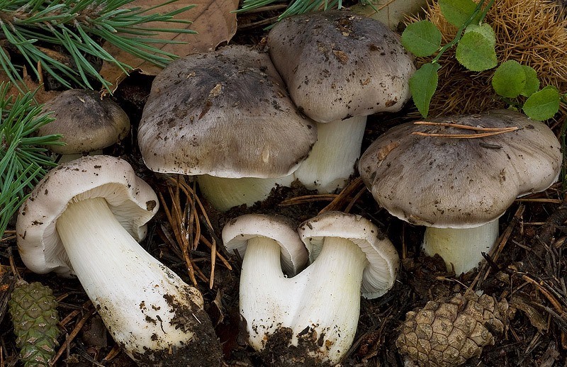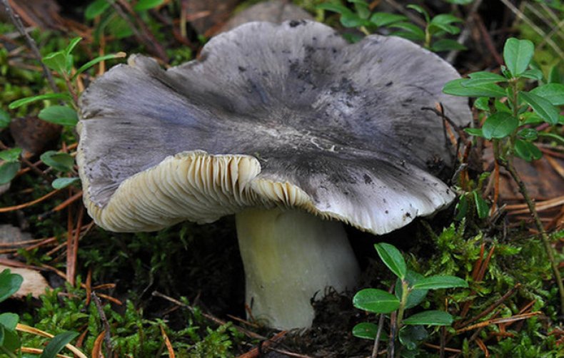 회색 마가목 버섯은 둥근 갓을 가지고 있으며, 짙은 회색에 자줏빛을 띤 갈색을 띠고 있습니다. 자라면서 납작해지고, 중앙에 작은 혹이 생깁니다. 버섯이 자라면서 표면은 매끄러워지고 갈라짐이 나타납니다. 과육은 부서진 부분에서 노랗게 변합니다. 이 종은 소나무 숲 속에서 자랍니다. 9월 초부터 서리가 내릴 때까지 볼 수 있습니다.