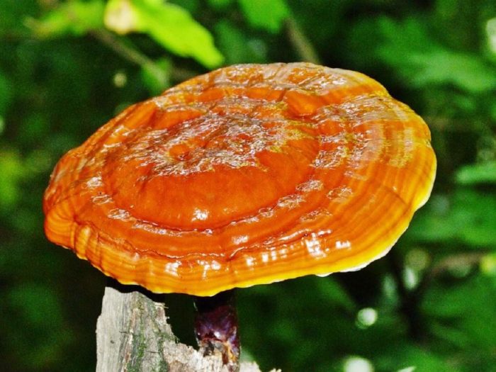 영지는 열대 및 아열대 기후에서 잘 자라며, 죽은 낙엽수 줄기에서 영양분을 얻습니다. 자두를 선호하지만, 침엽수에서도 자라는 것이 발견되었습니다. 영지는 특유의 나무 향이 납니다.