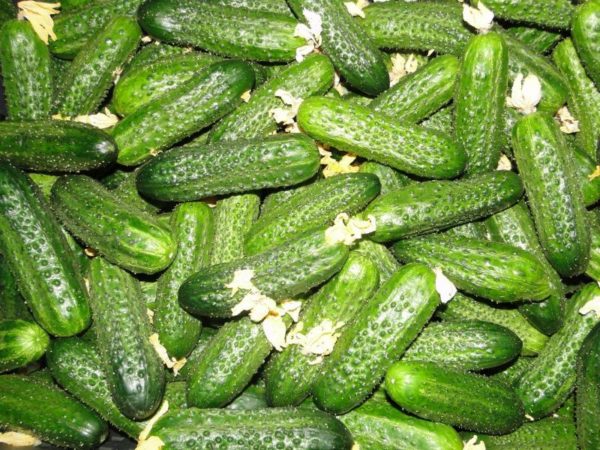 "쿠라즈" 오이는 악천후에도 풍성한 수확을 거두는 능력으로 인기를 얻은 1세대 교배종입니다. 설명뿐 아니라 농부들의 평가에 따르면, 비와 장시간 더위를 잘 견딥니다. 적절한 심기와 관리를 통해 사진과 같이 1제곱미터에서 약 18~20kg의 상품성 있는 짧은 열매 오이를 수확할 수 있습니다.