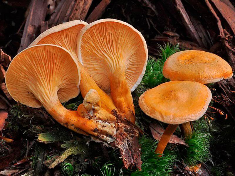 살구버섯처럼 위장하는 자실체도 있지만, 조금만 알아두면 진짜 살구버섯과의 차이를 확실히 알 수 있습니다. 흔한 살구버섯은 여러 과로 자라기 때문에, 자실체 하나를 발견하면 주변을 둘러보며 나머지 살구버섯도 살펴보는 것이 중요합니다. 거짓버섯은 단독으로 자라므로 이 점을 기억해야 합니다.