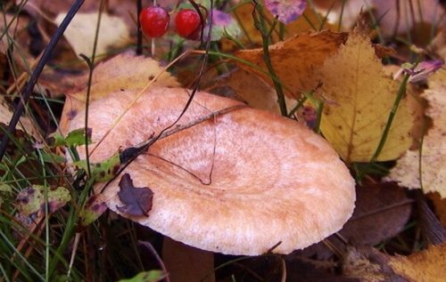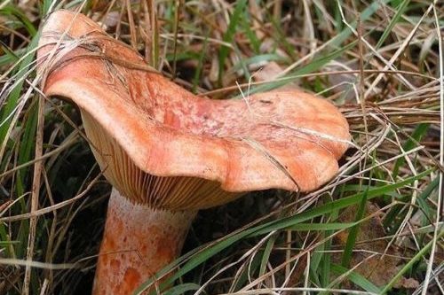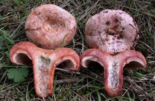 붉은 버섯은 소나무와 가문비나무 숲에서 흔히 볼 수 있습니다. 이 버섯은 빽빽한 붉은빛이 도는 분홍색 갓을 가지고 있으며, 지름은 10cm에 달합니다. 가장자리는 약간 솟아 있고 가운데는 움푹 들어간 부분이 있습니다. 갓 표면에는 끈적끈적한 막이 없습니다.