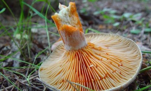 의심스러우면 뚜껑의 홈을 살짝 눌러보세요. 유백색 수액이 나옵니다. 이 수액은 유백색 러슐라(russula)에서 불쾌한 냄새가 납니다.