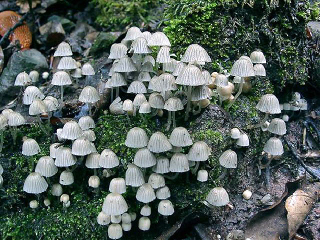 흰색과 회색 잉크 갓은 타원형이며, 시간이 지남에 따라 종 모양으로 변합니다. 흰색 품종의 갓은 흰색이고 꼭대기에 어두운 돌기가 있는 반면, 회색 품종의 갓은 회갈색입니다. 시간이 지남에 따라 흰색 품종의 갓은 약간만 열리는 반면, 회색 품종의 갓은 더 많이 열립니다. 줄기는 건조하고 매끄럽고 속이 비어 있습니다. 흰색 품종은 고리 모양이지만 회색 품종은 고리 모양이 없습니다. 사진과 설명을 보면 이 종들은 매우 특이한 종임을 알 수 있습니다.