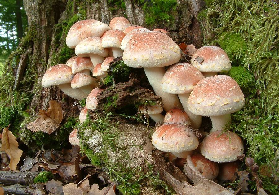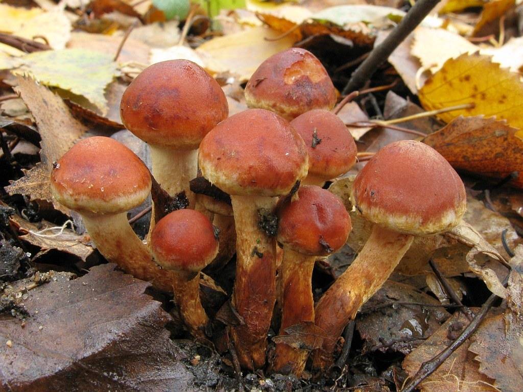 - 벽돌색 꿀버섯은 적갈색 또는 적갈색 표면을 가진 구형 갓으로 구별됩니다. 일반적으로 중앙 부분이 약간 더 어둡습니다. 줄기는 황갈색이며, 버섯띠가 없습니다. 살은 짙은 노란색이며, 쓰고 매콤하며 불쾌한 냄새가 납니다.
