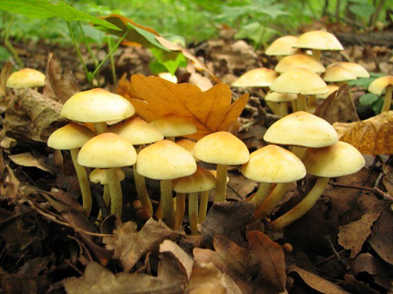 - 황황색 품종은 밝은 노란색 표면을 가진 육질의 갓으로 구별됩니다. 갓 가장자리에는 녹색빛이 감돕니다. 줄기는 키가 크고 속이 비어 있으며 거의 항상 휘어져 있습니다. 줄기는 노란색이며, 밑부분은 약간 더 어둡습니다. 과육은 흰색이며, 때로는 노란색을 띠기도 하며, 불쾌한 냄새와 맛이 납니다.