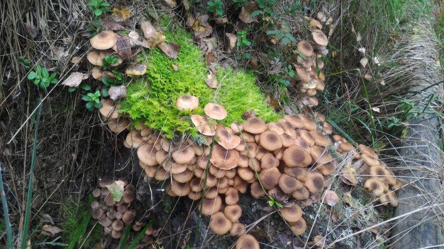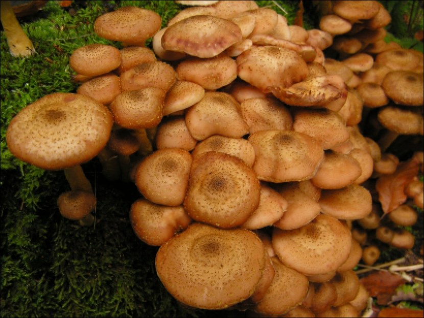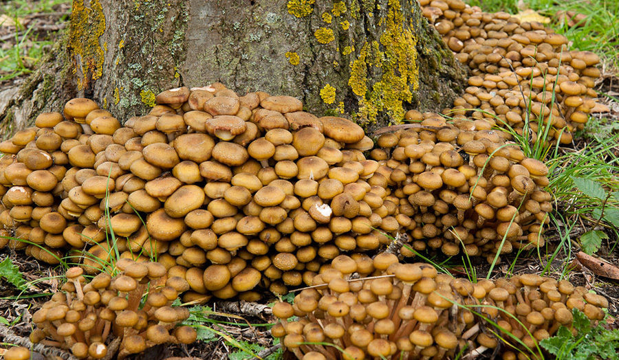 꿀버섯은 죽은 나무에서 잘 자라는 비슷하게 생긴 버섯들의 집합입니다. 때로는 이 버섯들이 다른 속(屬)뿐만 아니라 다른 과(科)에도 속하기도 합니다.