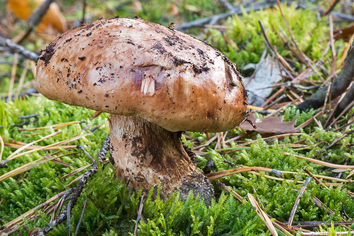 - 오래된 버섯의 갓에 결절이 있는 모습.