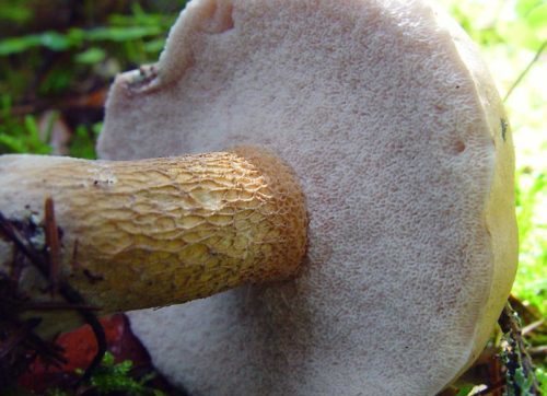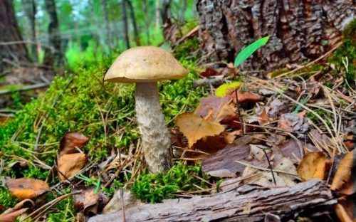 자작나무 볼레투스 - 잿빛 회색은 밝은 갈색 톤의 쿠션 모양의 볼록한 갓으로 구별됩니다. 관 모양의 층과 잿빛 회색 비늘이 있는 길쭉한 줄기의 색깔에서 이름이 유래되었습니다.