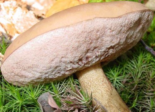 검은 자작나무 볼레테 - 핑킹 오바복은 살을 자르면 빠르게 분홍색으로 변한다는 점에서 구별됩니다.