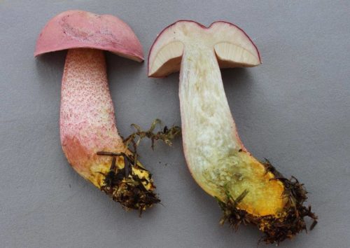 붉은머리그물버섯은 밝은 색깔의 갓과 큰 자실체뿐만 아니라, 살이 산소에 반응하는 방식에서도 다른 버섯과 구별됩니다. 붉은머리그물버섯의 살은 자르면 검게 변합니다. 손상되면 퀴논(버섯즙에 함유된 화학 물질)이 생성되기 시작하는데, 이 퀴논이 산소에 노출되면 살이 처음에는 분홍색으로 변하고, 그다음에는 파란색이나 검은색으로 변합니다.