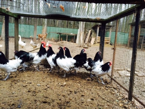 이 장난기 많고 호기심 많은 흑백색 암탉들은 자유롭게 돌아다니는 것을 좋아하며, 종종 울타리를 넘나듭니다. 겨울에도 돌아다니며, 암탉에게 가장 좋은 일광 시간은 12시간입니다. 여름철 더운 날씨에는 산책로 일부에 그늘을 만들어 주는 것이 좋습니다.