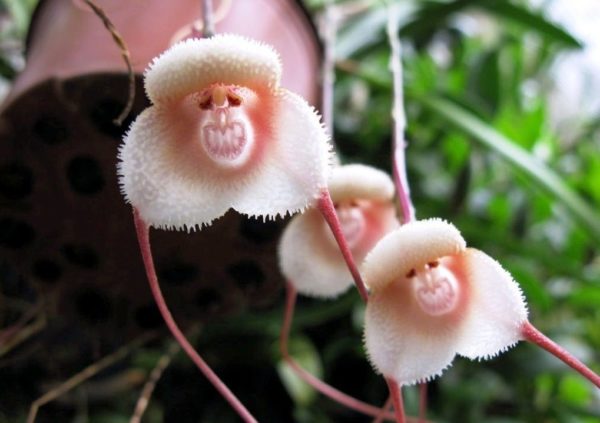 난초는 가장 인기 있는 실내 꽃식물 중 하나입니다. 많은 정원사들이 집이나 온실에서 난초를 키우는 것을 좋아합니다. 자연에는 브라시아, 드라큘라, 카틀레야 등 수많은 종과 변종이 있습니다. 몽키 오키드라는 이름은 독특한 생김새에서 유래했습니다. 이 종은 흰색, 버건디, 짙은 녹색 등 다양한 색상을 가지고 있습니다. 하지만 이 모든 꽃에는 한 가지 공통점이 있습니다. 바로 세 개의 꽃잎이 밑부분에서 합쳐져 하나의 컵 모양을 이루면서 바깥쪽으로 뻗어 있다는 것입니다. 몽키 오키드는 실내 재배에서는 매우 드뭅니다.