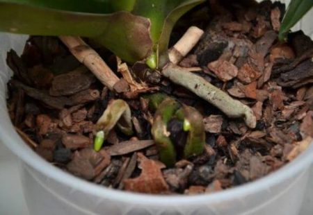난초를 옮겨 심기 전에 뿌리를 주의 깊게 살펴보고, 손상되었거나 말라붙었거나 썩은 새순을 제거한 후, 잘린 부분에 나무재를 뿌립니다. 난초를 심을 화분에 나무껍질을 깔고, 나무껍질과 뿌리 사이 부분에 이끼를 채워줍니다.