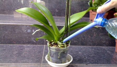 난쟁이 호접란은 물에 잠기는 관수를 선호합니다. 이렇게 하려면 화분을 실온의 침전물이 담긴 용기에 넣고 20분 동안 그대로 두세요. 뿌리가 썩을 수 있으므로 오랫동안 물에 담그는 것은 권장하지 않습니다.