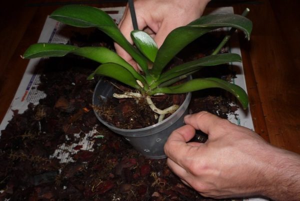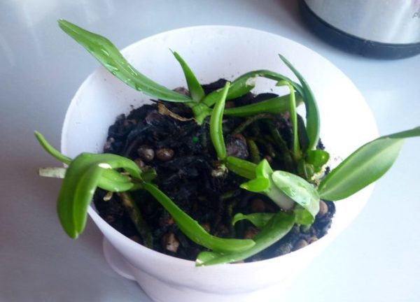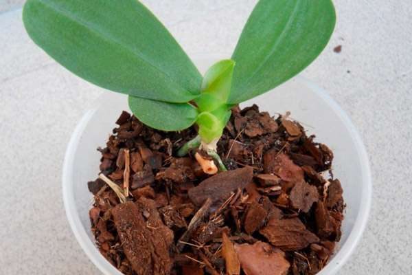 분갈이 후, 어린 난초는 주의 깊게 관찰하고 필요한 관리를 받습니다. 물은 화분 흙에 분무하여 줍니다.